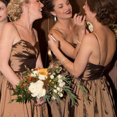 Gormsen/Kaunisto Remnant Fellowship Wedding- Bridesmaids wearing champagne with various styles