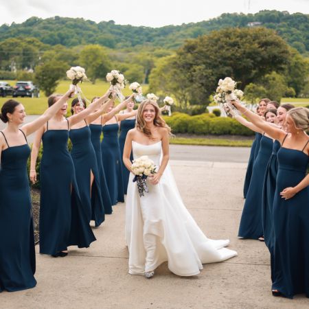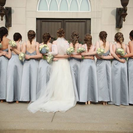 Wheeler/VanZante Covenant Wedding- Light Blue Satin Bridesmaid Dresses with cowl neck